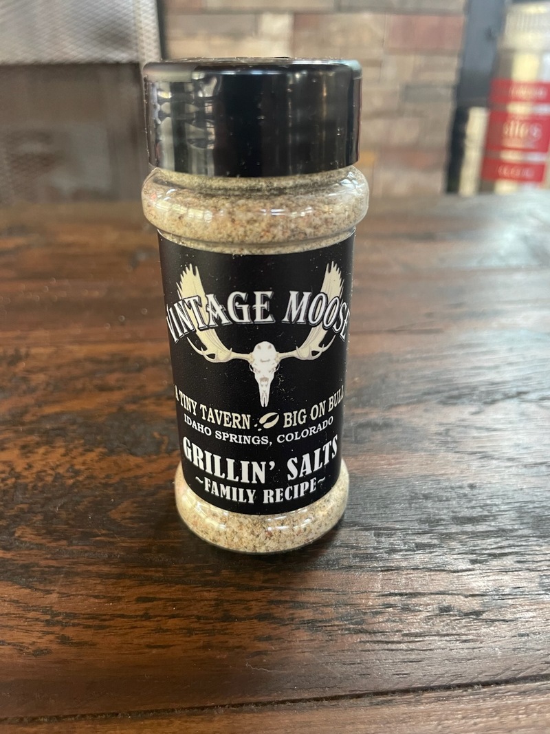 Vintage Moose Grillin' Salts - goes great on beef, poultry, pork, fish, seafood, popcorn, potatoes, pasta, eggs, veggies, and salads.